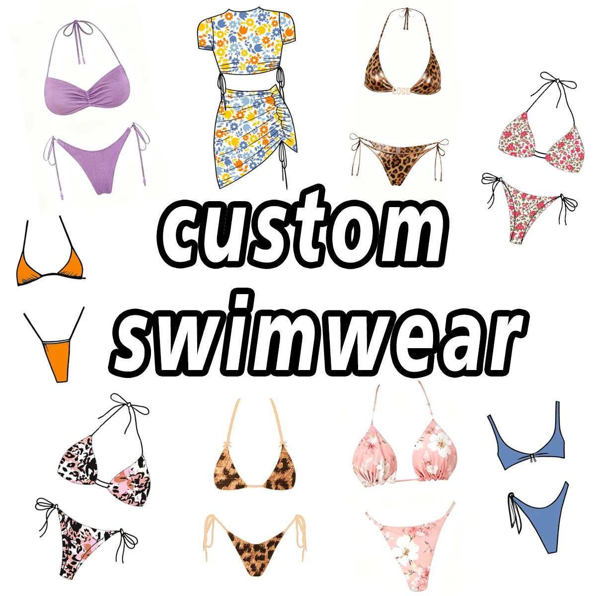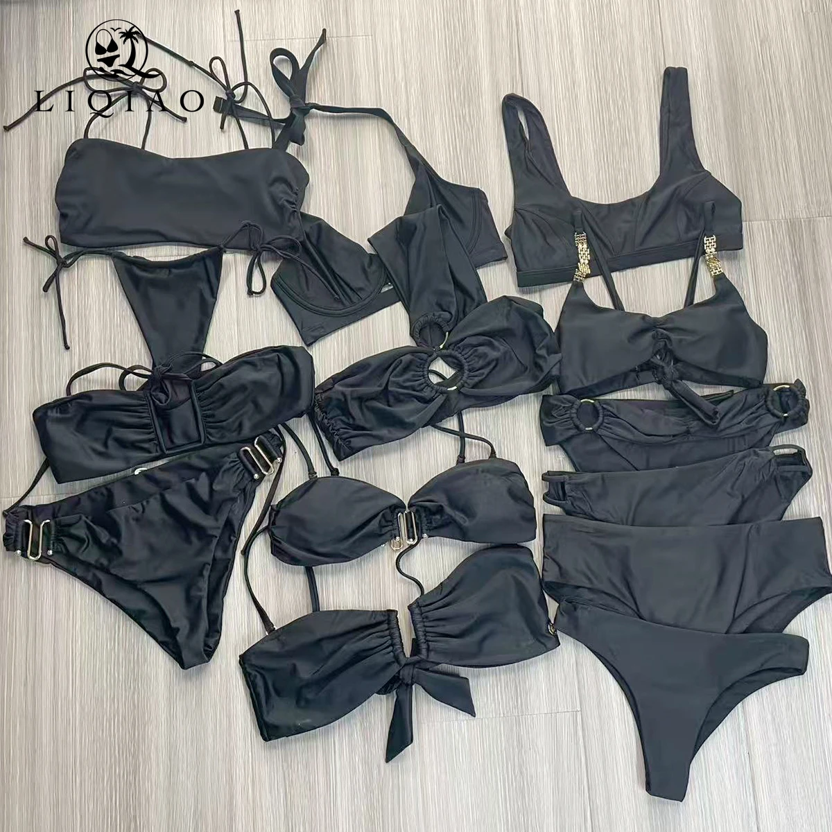 Black Reversible Breathable Plus 2 Piece Swimsuit Tummy Control Eco-Friendly Spandex/Polyester Fabric Halter Neck Brazilian